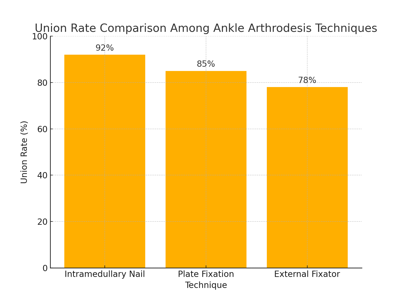 Study (Year) | Technique | Union Rate | Time to Union (weeks) | Complication Rate | Key Findings |